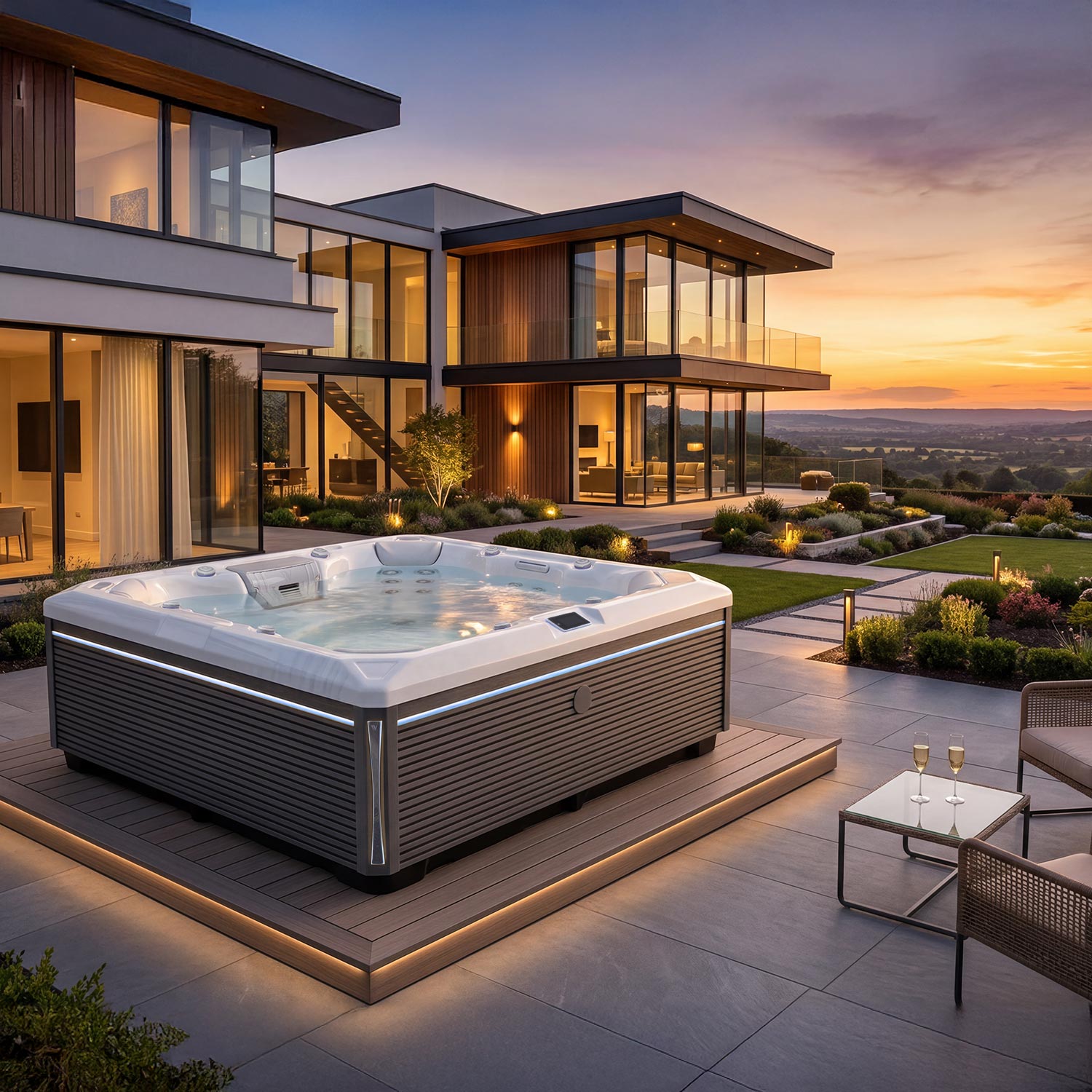 Le système d’armoires LightSide™ apparaît dans les spas PeakLife, qui comprennent un éclairage caché sous les éléments d’angle, et une bande LED développée en interne, qui court le long du couvercle latéral du spa.